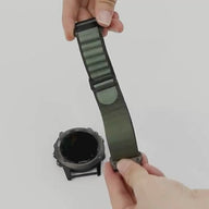Setze ein Statement mit Stil und Komfort – dieses Nylonarmband wurde entworfen, um dich bei all deinen Abenteuern zu begleiten. Nur das Armband, Uhr nicht enthalten.