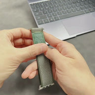 Die breite Kompatibilität mit allen Apple Watch Serien, einschließlich der Modelle Ultra und Ultra 2, macht es zu einem unverzichtbaren Begleiter für alle Technikliebhaber. Sein dezentes und modernes Design, unterstrichen durch ein dezent platziertes Logo, verleiht Ihrem Handgelenk eine Note lässiger Eleganz.