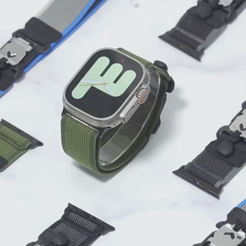 Compatible with Apple Watch models 44, 45, 46, and 49 mm, this bracelet meets demanding needs without compromising on style. Its design in technical materials makes it the perfect companion for urban explorers and outdoor enthusiasts. Every detail is crafted to combine functionality with sporty elegance.