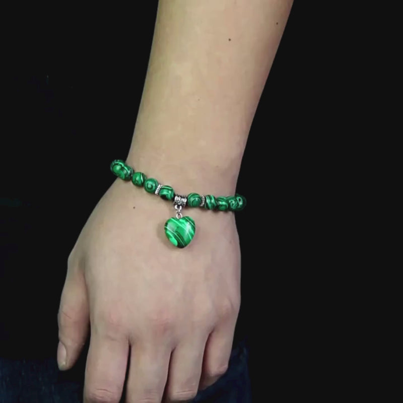 Natural stone bracelet, heart charm, unisex, Peyton model.
