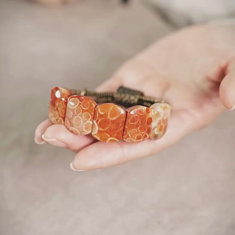 Capture the essence of dazzling natural beauty with this coral stone bracelet. Designed for women who wish to add a touch of natural grace to their daily life, this piece is a symphony of warm tones and fluid design.