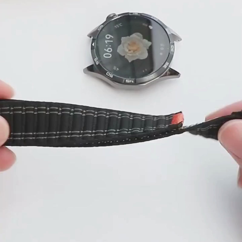 Designed for those seeking both elegance and strength, this strap comes in several trendy colors: black, navy blue, military green, burgundy, pink and white, and grey. Each shade has been carefully selected to offer you personalization that matches your style. Its woven nylon material ensures optimal comfort while allowing excellent breathability during your daily or sports activities.
