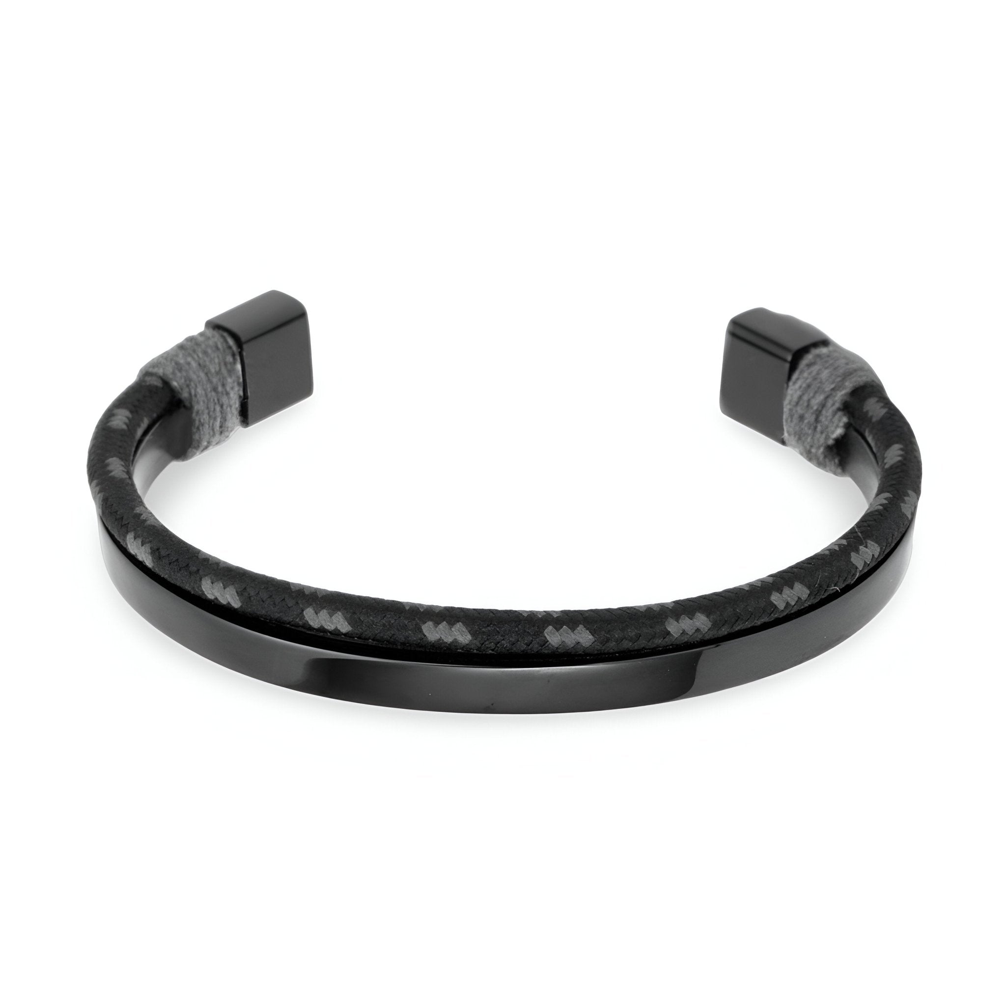 Esta pulsera combina con elegancia un diseño moderno y materiales resistentes. El brazalete de acero inoxidable aporta un toque de sofisticación y asegura una excelente durabilidad. El contraste con el cordón de algodón trenzado añade un aire dinámico, perfecto para quienes buscan un accesorio estiloso y práctico a la vez.