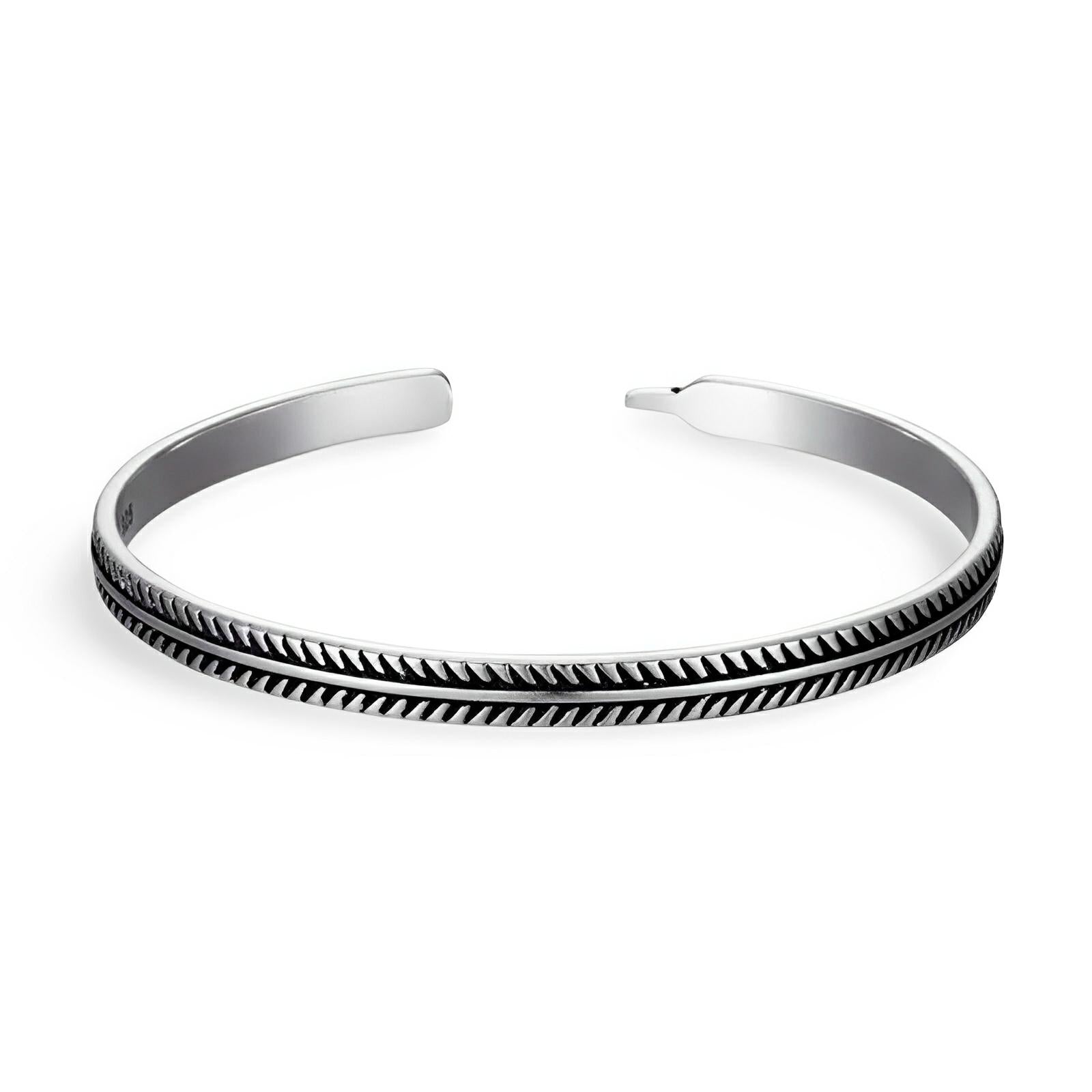 Por último, la tercera pulsera es de plata, decorada con un motivo grabado que evoca el arte tradicional. Este brazalete rígido añade un toque de sofisticación a tu muñeca, combinando resistencia y brillo. El acabado plateado le da un aire chic y atemporal, ideal para completar tu colección de joyas. Juntas, estas tres pulseras crean una armonía perfecta, uniendo materiales variados y significados profundos para un look moderno y espiritual a la vez.