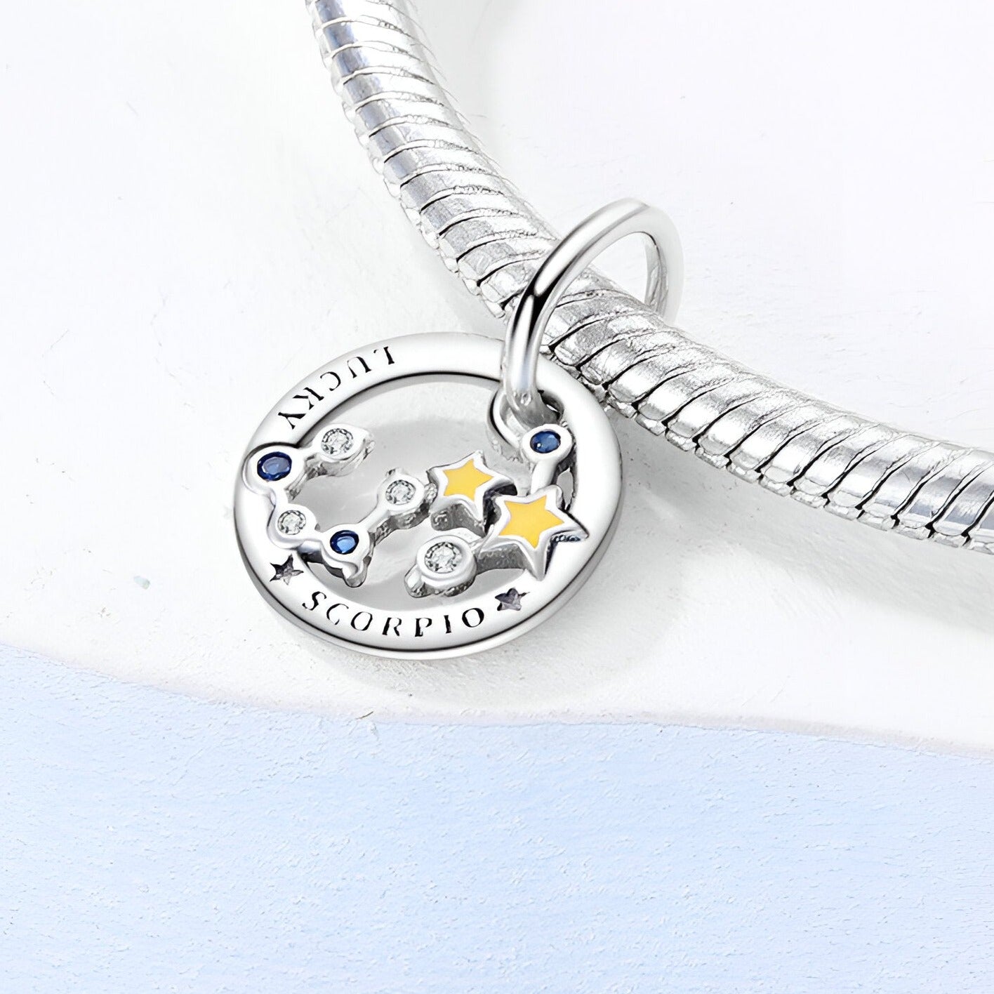 Deja que la magia de las estrellas guíe tu fuerza interior con este charm de Escorpio, un talismán de pasión y misterio.