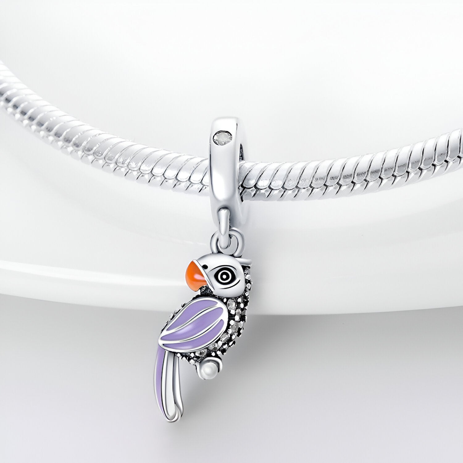 Fabricado en plata 925 de alta calidad, este charm no solo es duradero, sino también ligero y cómodo de llevar. Regálalo a alguien especial o añádelo a tu propia colección para lucir un estilo delicado y brillante. Este charm de loro es imprescindible para quienes quieren llevar un símbolo de belleza y vitalidad con elegancia.