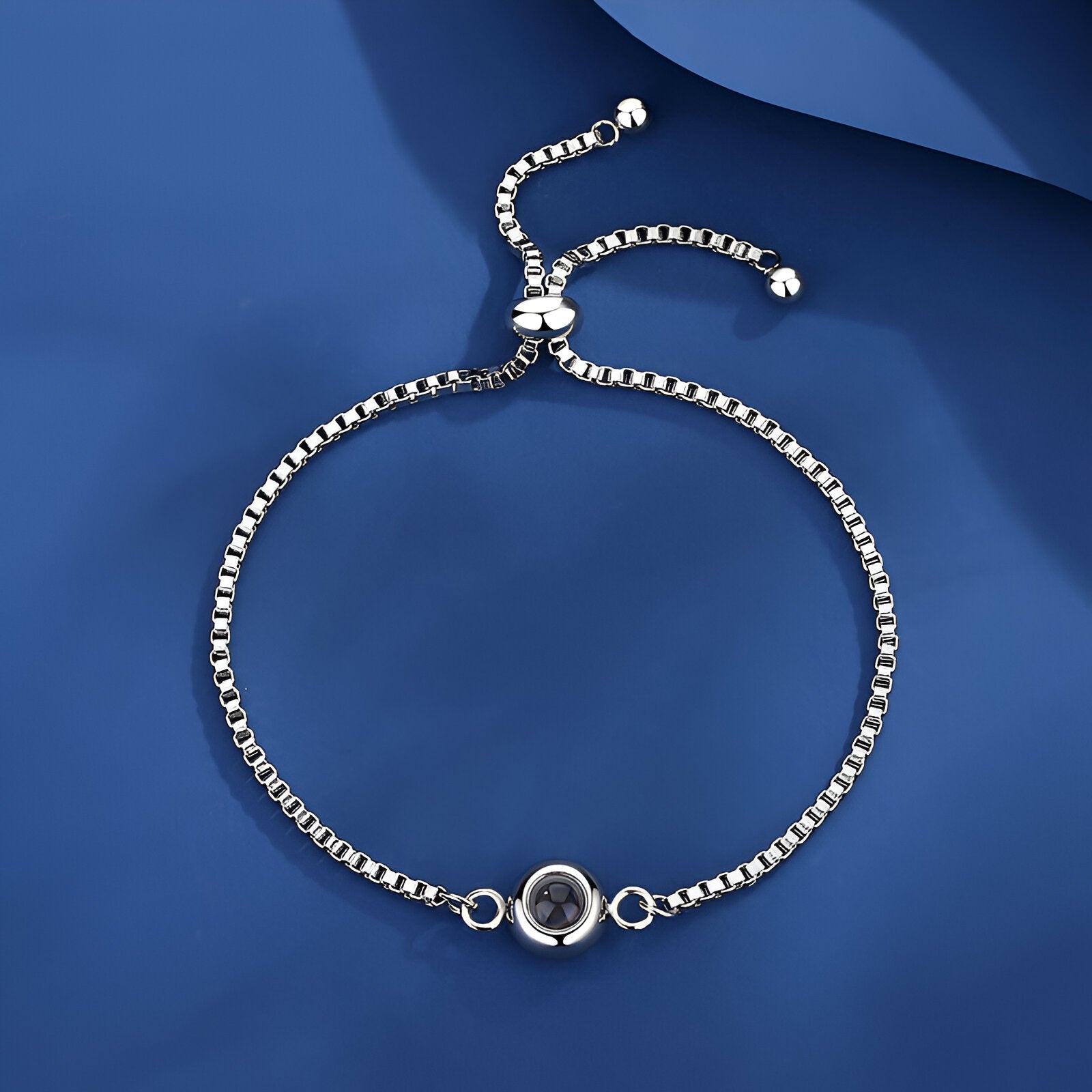 Lo ingenioso de esta pulsera está en la posibilidad de mirar la imagen insertada a través de un pequeño cristal, una característica que añade un toque sentimental a cada movimiento de tu muñeca. Además, si pones una fuente de luz bajo la joya, la imagen se proyecta en la pared, creando un momento mágico e íntimo, perfecto para compartir un recuerdo especial de una forma original y elegante.