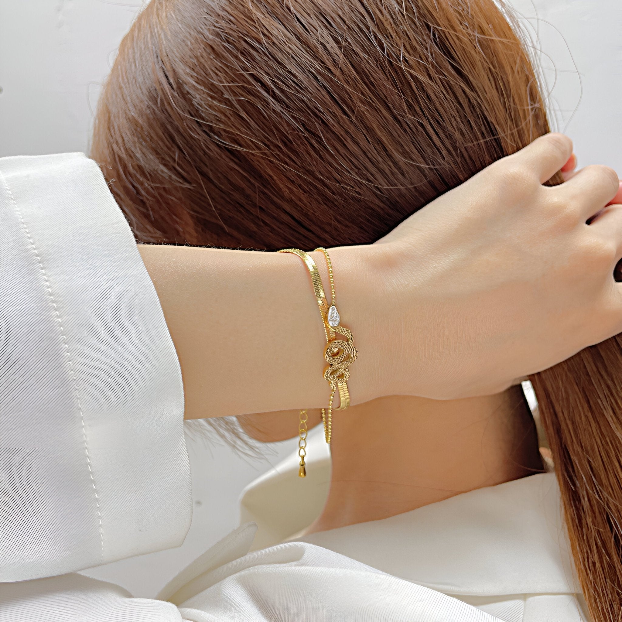 Este pulsera ajustable para mujer es una verdadera obra de elegancia, donde la delicadeza se une al brillo. Diseñada con una malla tipo serpiente en acero inoxidable de alta calidad, esta joya luce un lujoso baño de oro que le da una luminosidad inigualable y una resistencia excepcional para el día a día.
