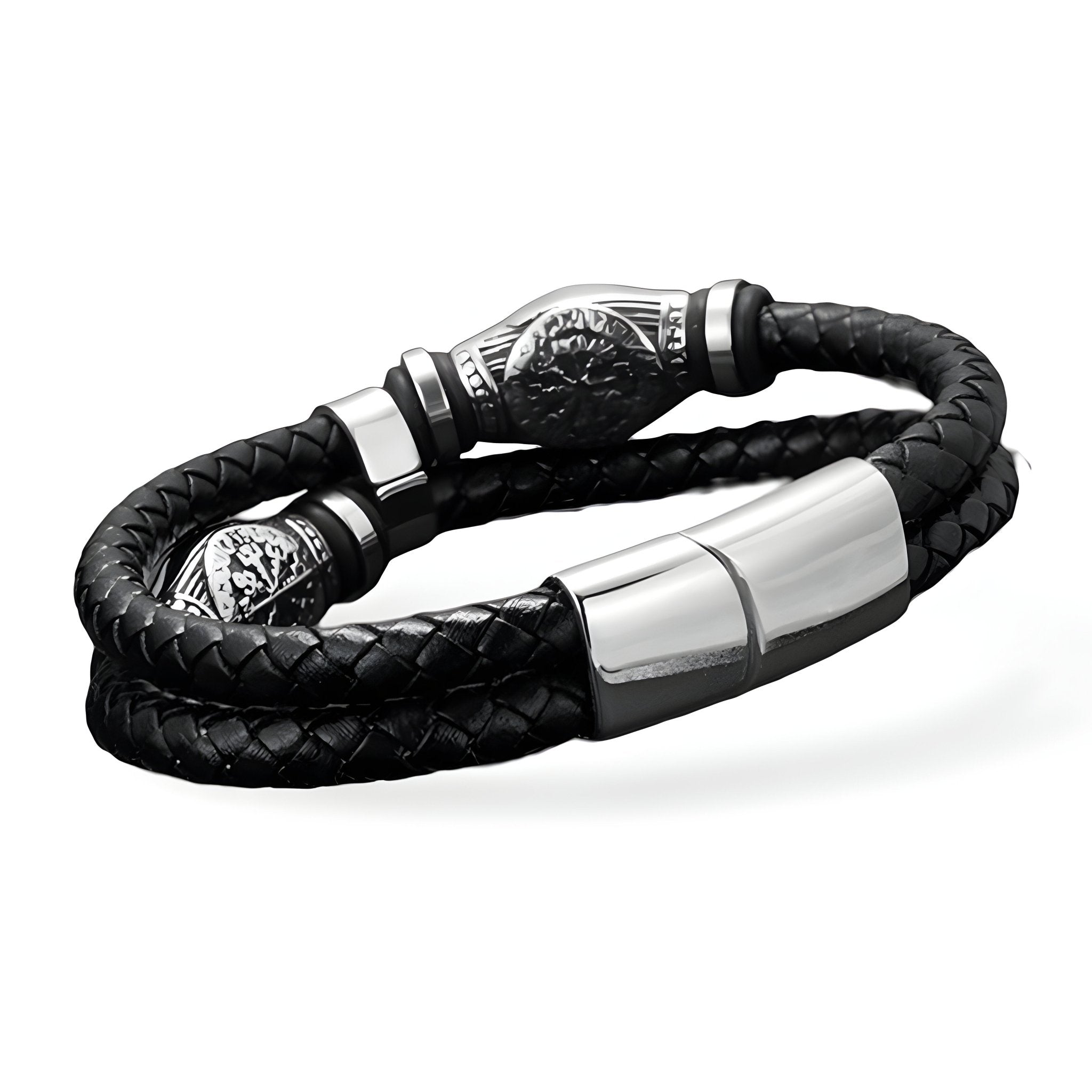 Ontdek pure elegantie met onze dubbele leren armband , een gedurfde creatie die een eerbetoon is aan de kracht van Vikingkrijgers . Elk stuk is ontworpen om de essentie van oude mannelijkheid vast te leggen en tegelijkertijd moderne stijl te belichamen.